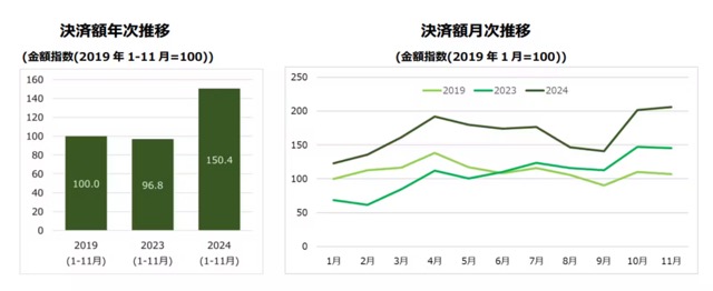 訪日外国人のクレジットカード決済額、2019年比で50.4%増(三井住友カード)<…詳しく見る>